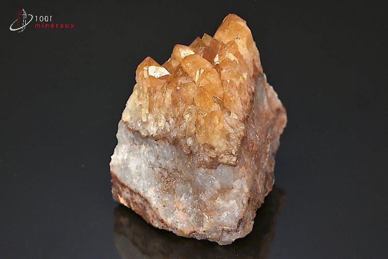 Spécimen d'une Citrine présentant de beaux cristaux jaunes translucides.