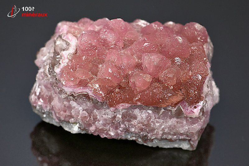 Magnifique spécimen d'une cristallisation bien développée de Cobaltocalcite rose foncée sur roche.
