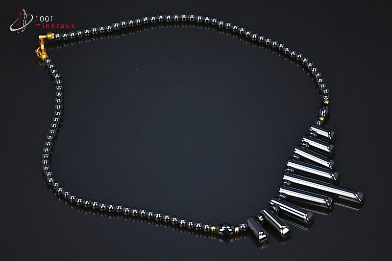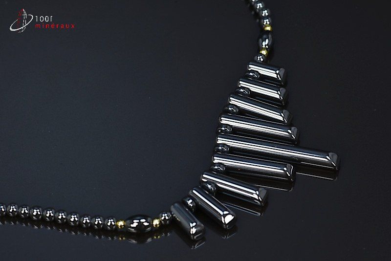Elégant collier composé d'un ensemble de perles (4mm) et de cylindres en Hématite.