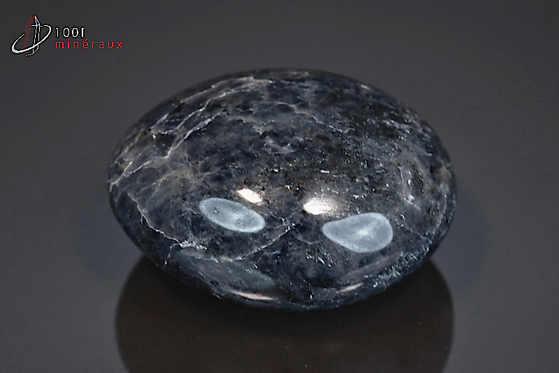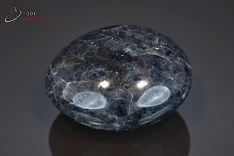 Spécimen d'une Cordiérite bleu-noir polie en galet.