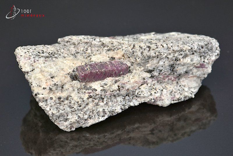 Spécimen d'un bloc rocheux contenant un très beau cristal de Corindon Rubis rouge de 2,1 cm.