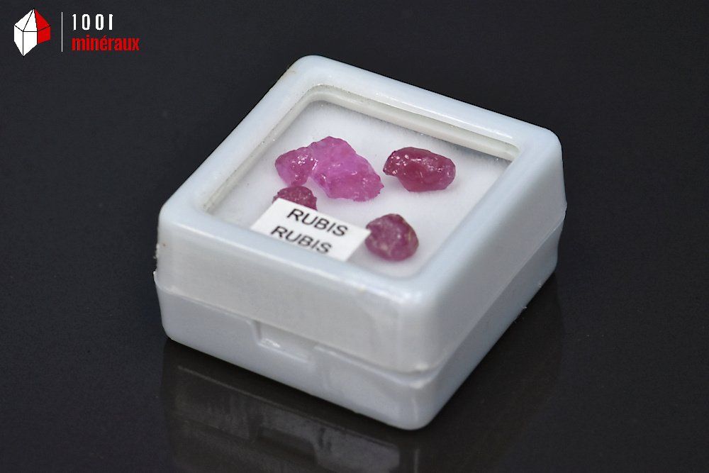 4 spécimens de Rubis Corindon. Présentation en boîtier plastique.