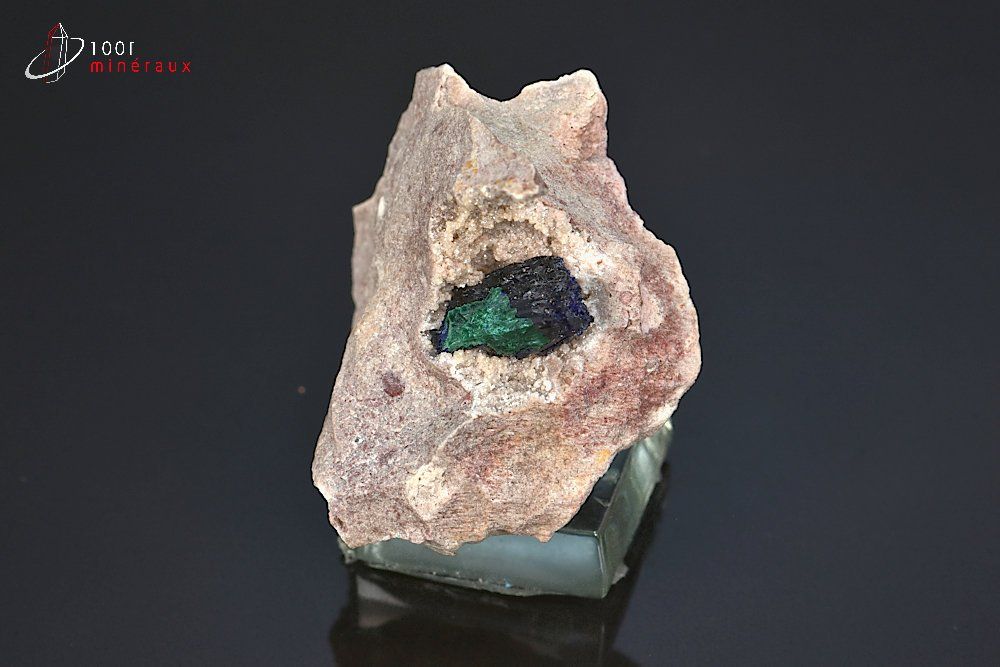 Magnifique cristallisation d'Azurite bleu foncé et de Malachite dans son écrin rocheux.