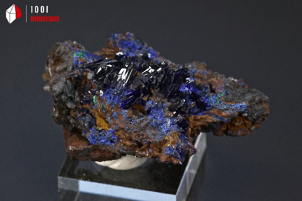 Très belle cristallisation d'Azurite bleu foncé sur roche brune.