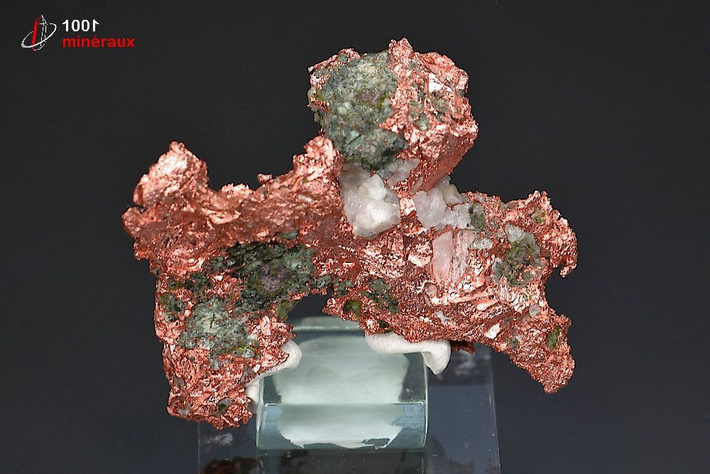 Le CUIVRE appartient au groupe des éléments natifs. Il est utilisé depuis le néolithique. Il se présente généralement sous une forme massive, mais peut développer des cristaux cubiques. Sa couleur est rouge-orangé aux reflets métalliques. Le CUIVRE est largement utilisé dans l'électricité, l'électronique, mais aussi dans la conception hydraulique des habitations.