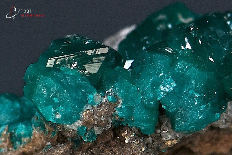 Le nom de Dioptase provient de 2 noms grecs, "dia" et "opsis" qui signifient "à travers" et "vision".