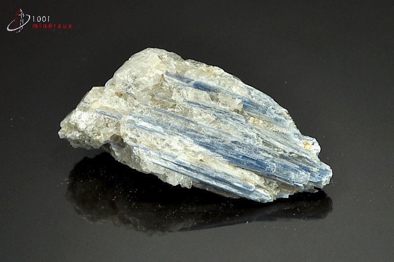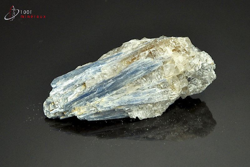 La DISTHENE (ou KYANITE) appartient au groupe des silicates. Elle contient de l'aluminium et du silicium. La disthène présente généralement de longs cristaux de forme allongée et plate. Sa couleur est principalement le bleu, mais aussi le gris ou le blanc.