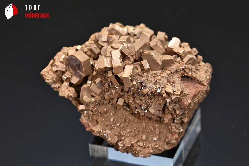 Très joli spécimen d'Endlichite sur roche présentant des cristaux hexagonaux de couleur brun foncé.