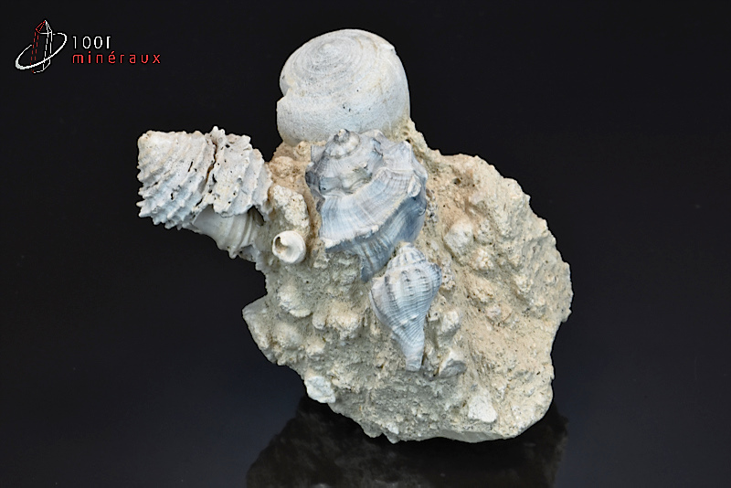 Groupement de plusieurs coquillages fossiles dont Fusus sur gangue.