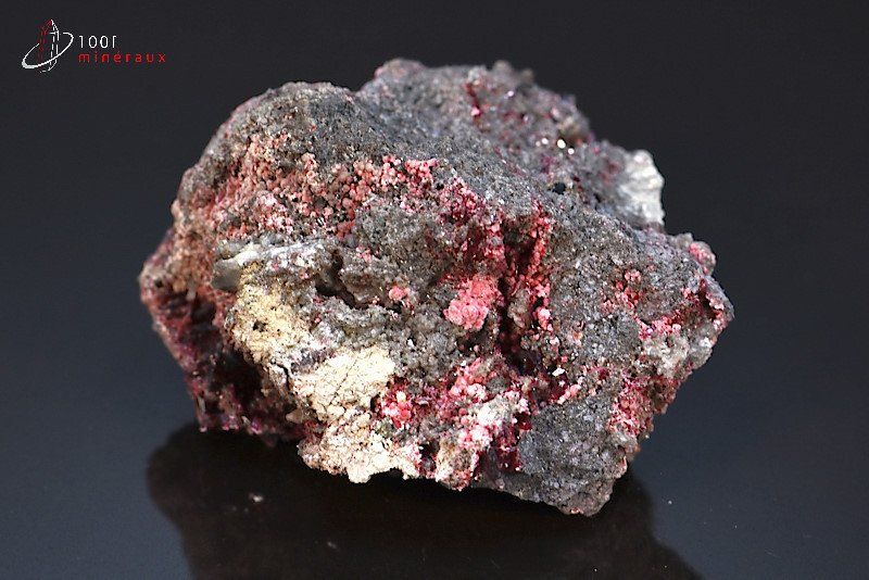L' ERYTHRINE ou ERYTHRITE appartient au groupe des arséniates. Elle contient de l'arsenic et du cobalt. Elle présente généralement des cristaux striés prismatiques ou aciculaires. C'est un minéral assez recherché. L' ERYTHRINE a une très belle couleur rose foncé aux reflets métalliques.