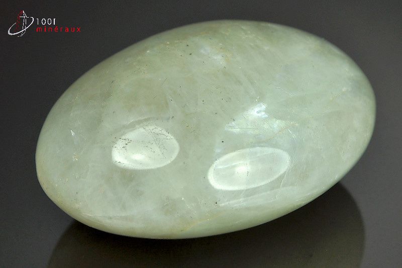Spécimen d'un galet de Garniérite polie de couleur verdâtre.