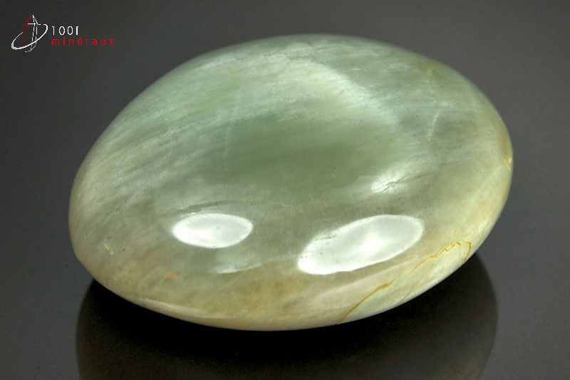 Spécimen d'un galet de Garniérite polie de couleur verdâtre.