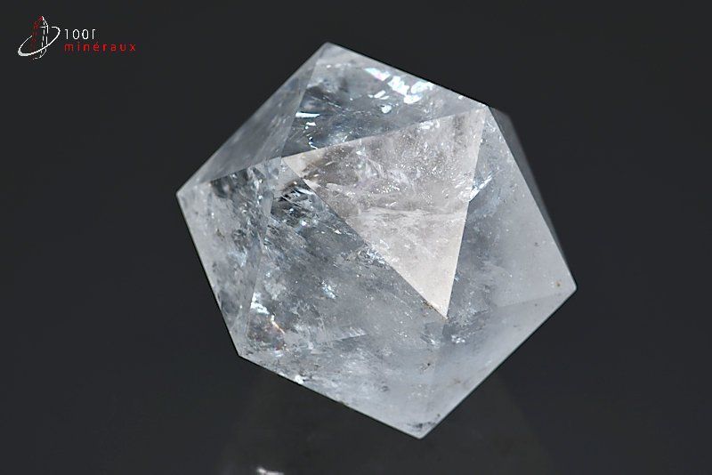 Très beau spécimen d'un grand icosaèdre poli (20 faces) en Cristal de roche.
