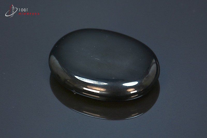 Très beau spécimen d'un galet plat de Jais poli.