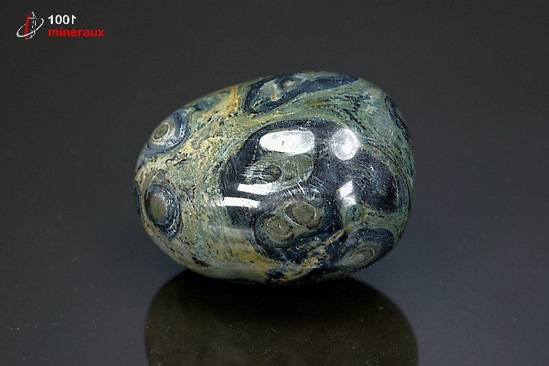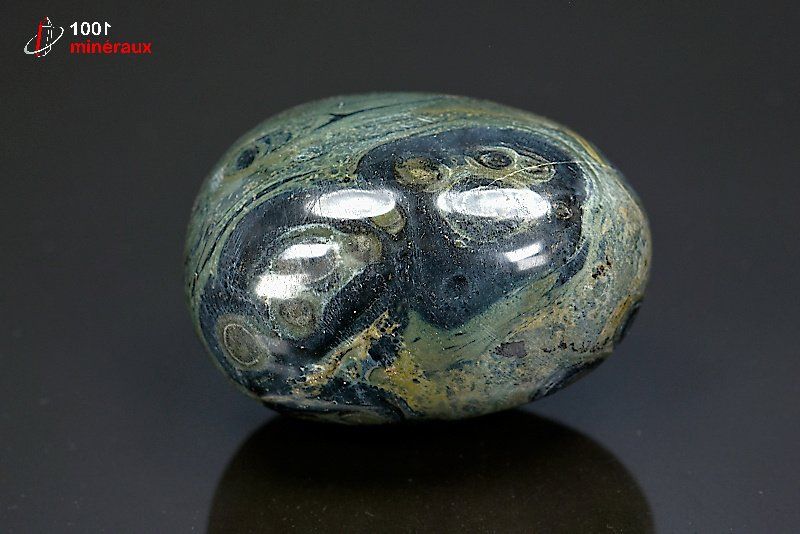 Très joli galet de Jaspe Kambala poli présentant des dessins aux nuances variées.
