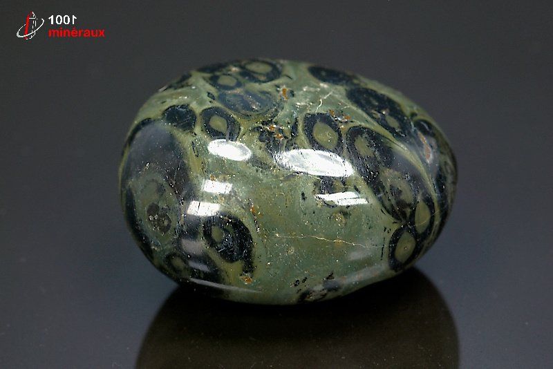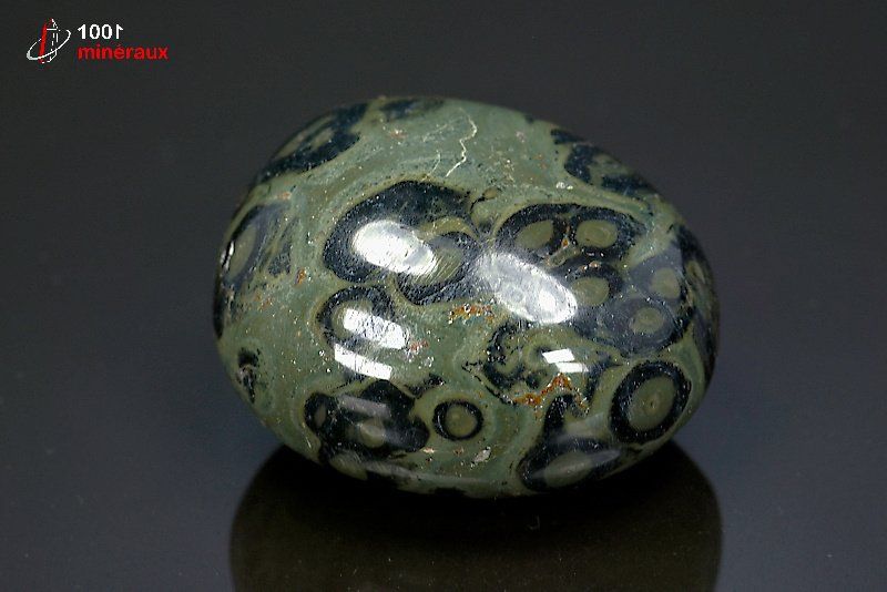 Très joli galet de Jaspe Kambala poli présentant des dessins aux nuances variées.