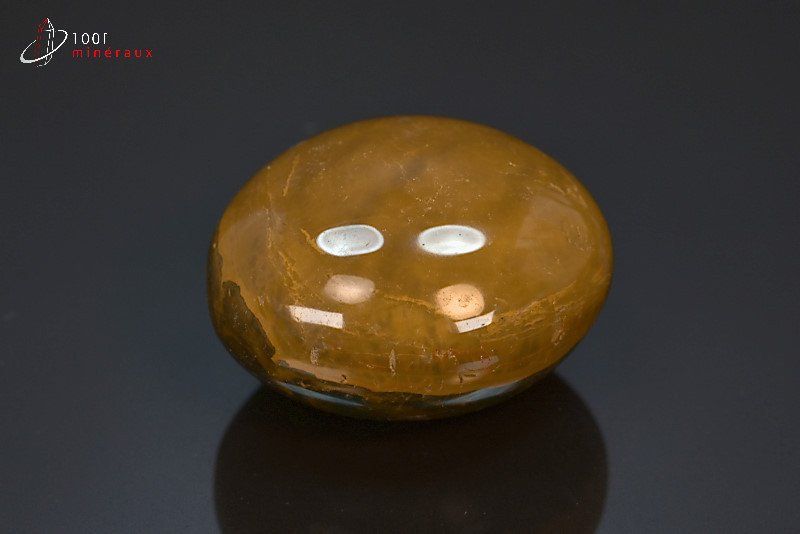 Très joli galet de Jaspe poli jaune présentant des dessins aux nuances variées.