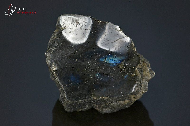 La LABRADORITE appartient au groupe des silicates. Elle contient du sodium, de l'aluminium et du silicium. Elle se présente généralement sous une forme massive. Ce minéral retient l'attention du fait d'une impressionnante réflexion de la lumière. Les couleurs renvoyées sont des bleus particulièrement profonds, du vert, du jaune et du blanc. La Labradorite 1 face polie est présentée sous forme brute avec une face polie qui met en évidence les magnifiques réflexions de ce minéral.