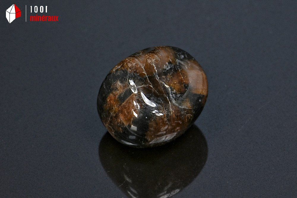 La CHIASTOLITE appartient au groupe des silicates. Elle contient de l'aluminium et du silicium. Elle se présente sous une forme massive ou en cristaux allongés. Sa caractéristique est la croix noire symétrique qui se dessine sur la plupart des échantillons et qui a d'ailleurs donné son nom à ce minéral. La CHIASTOLITE est le plus souvent de couleur brune.