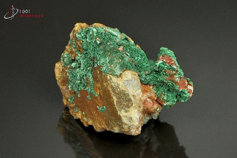 Spécimen de Malachite présentant une cristallisation en croûte verte.