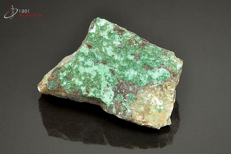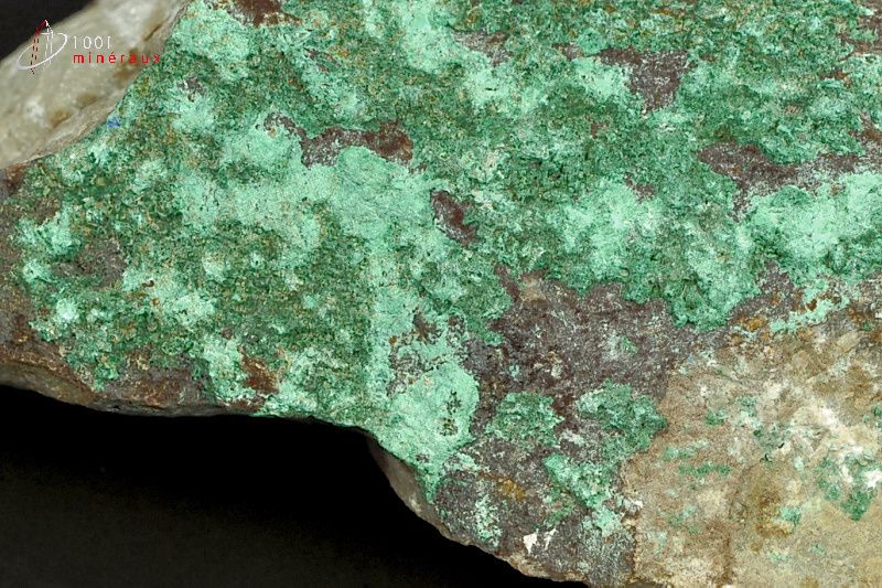 Spécimen de Malachite présentant une cristallisation en croûte verte.