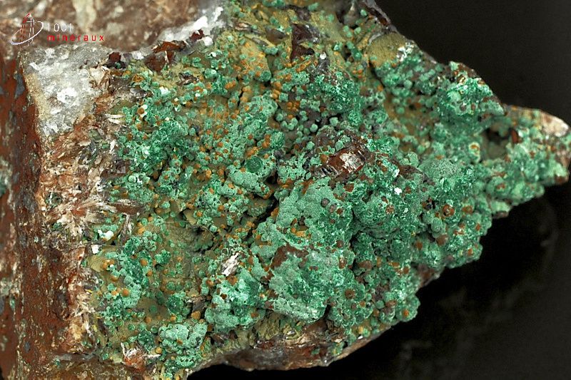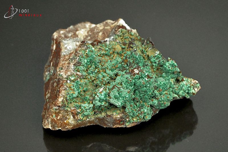 Spécimen de Malachite présentant une cristallisation en croûte verte.
