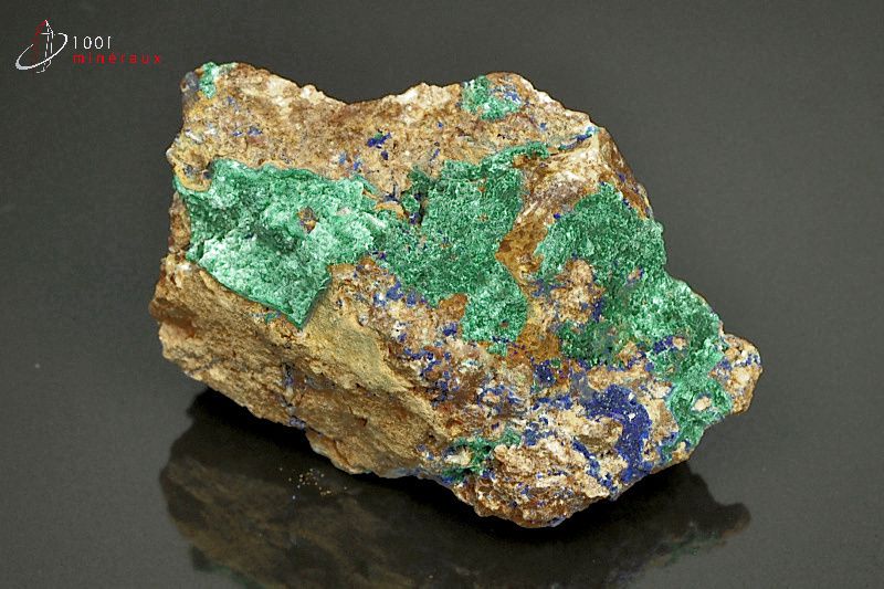 Spécimen de Malachite présentant une cristallisation en croûte verte.