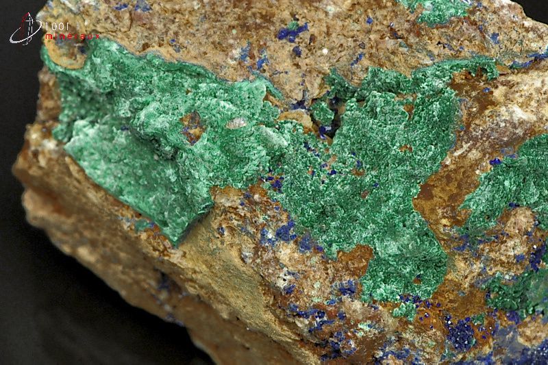 Elle se présente généralement sous une forme massive ou en cristaux rayonnants qui donnent des reflets chatoyants. Ce minéral est souvent associé à l'Azurite.