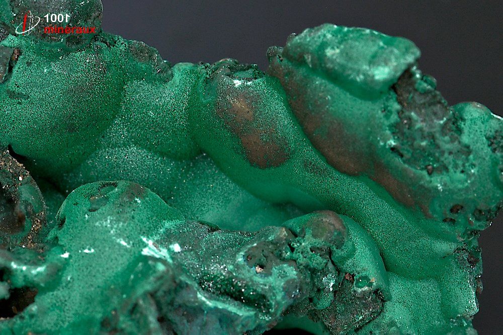 La MALACHITE appartient au groupe des carbonates. Elle contient du cuivre.