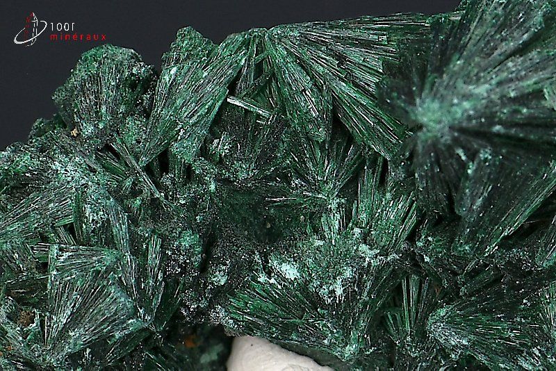 Elle se présente généralement sous une forme massive ou en cristaux rayonnants qui donnent des reflets chatoyants. Ce minéral est souvent associé à l'Azurite.