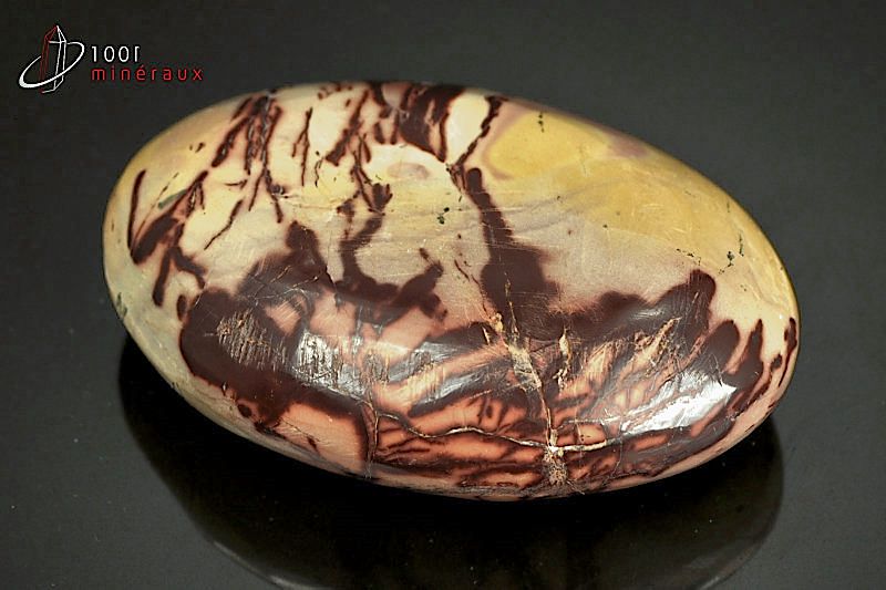 Spécimen d'un beau galet poli de Mokaïte.