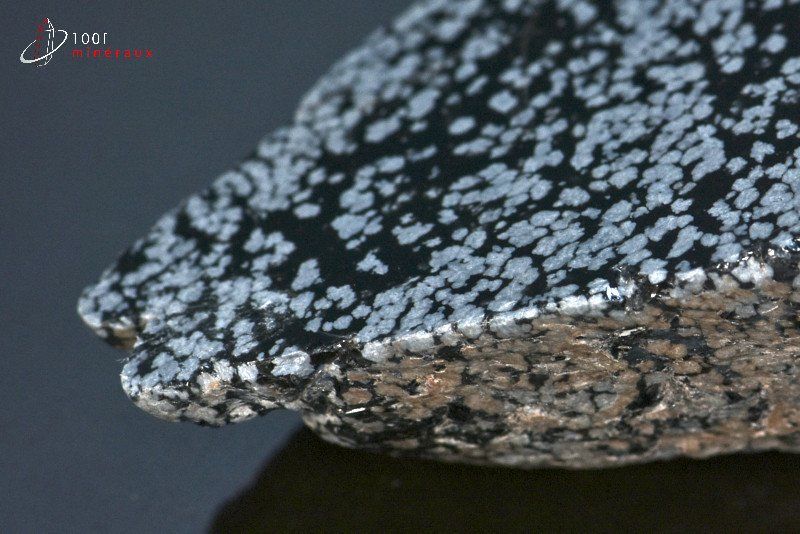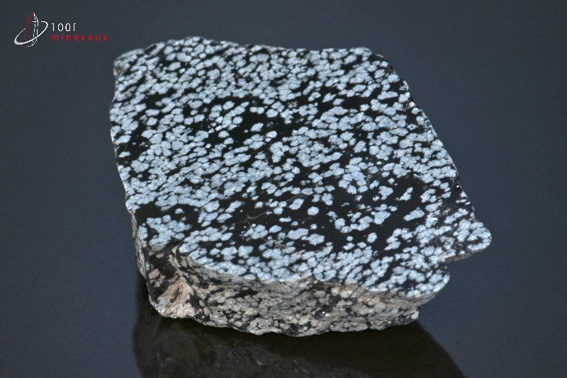Très beau spécimen d'une Obsidienne flocons de neige polie sur une face.