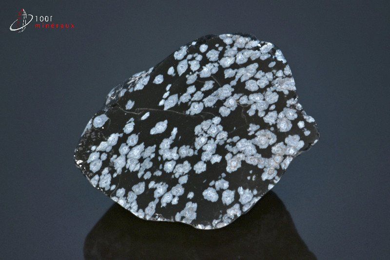 Très beau spécimen d'une Obsidienne flocons de neige polie sur une face.