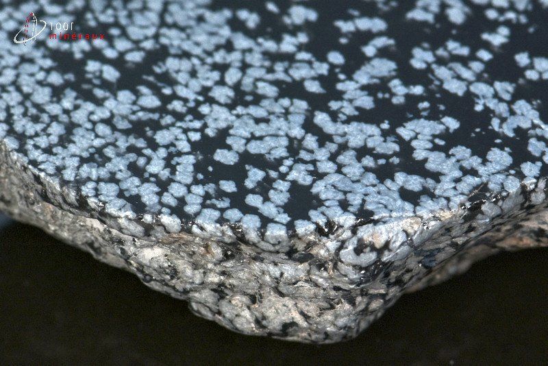 Très beau spécimen d'une Obsidienne flocons de neige polie sur une face.