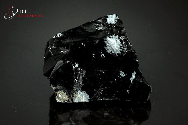L' OBSIDIENNE est une roche d'origine volcanique essentiellement formé de silice. Ses principales caractéristiques son sa dureté et son tranchant (fracture conchoïdale naturelle) qui vont lui trouver une utilisation pendant la préhistoire comme outil ou comme arme (lames de couteau ou pointes de flêches). L' OBSIDIENNE est généralement de couleur noir intense brillant, mais elle peut présenter des sortes de flocons blancs qui sont des cristaux aciculaires microscopiques.