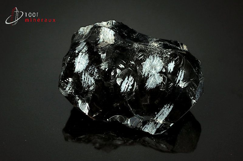 L' OBSIDIENNE est une roche d'origine volcanique essentiellement formé de silice. Ses principales caractéristiques son sa dureté et son tranchant (fracture conchoïdale naturelle) qui vont lui trouver une utilisation pendant la préhistoire comme outil ou comme arme (lames de couteau ou pointes de flêches). L' OBSIDIENNE est généralement de couleur noir intense brillant, mais elle peut présenter des sortes de flocons blancs qui sont des cristaux aciculaires microscopiques.