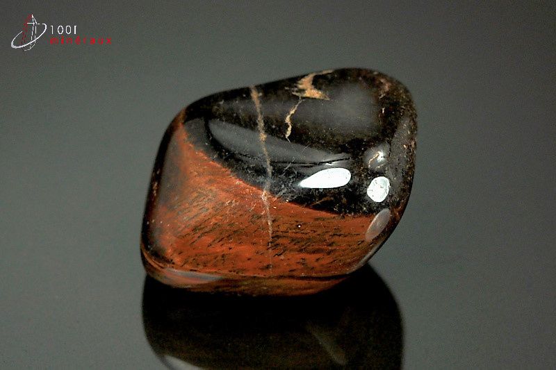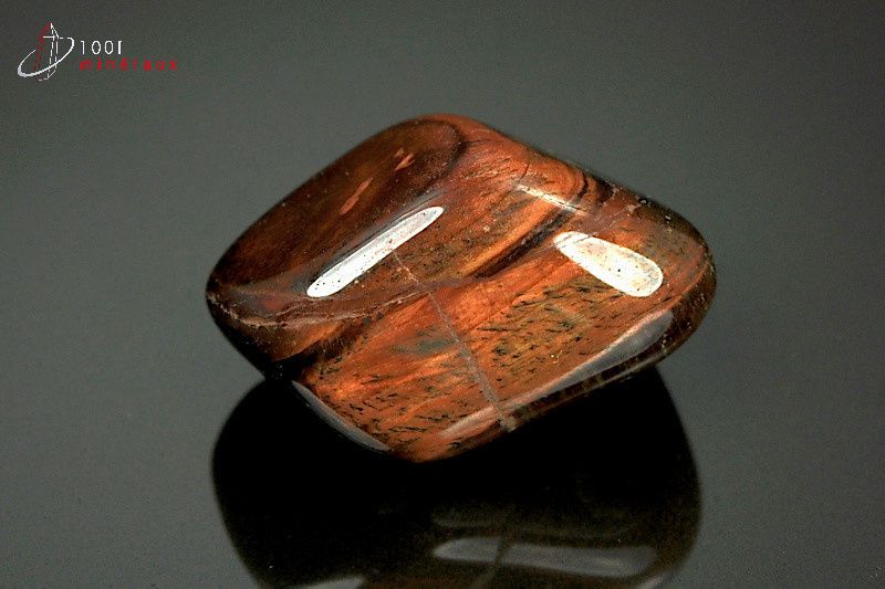 L' OEIL DE TAUREAU appartient au groupe des silicates. Il contient essentiellement du silicium et a la même formule chimique que le Quartz. C'est une variété de calcédoine. Il se présente sous forme massive microcristalline. C'est une pierre très dure. L'alternance de bandes provient de la combinaison avec un autre minéral riche en fer, la Riebeckite. Il existe plusieurs sortes d' yeux : l' OEIL DE TIGRE, l' OEIL DE TAUREAU (le plus souvent Oeil de Tigre chauffé), l' OEIL DE CHAT, l' OEIL DE FAUCON, l' OEIL DE FER.