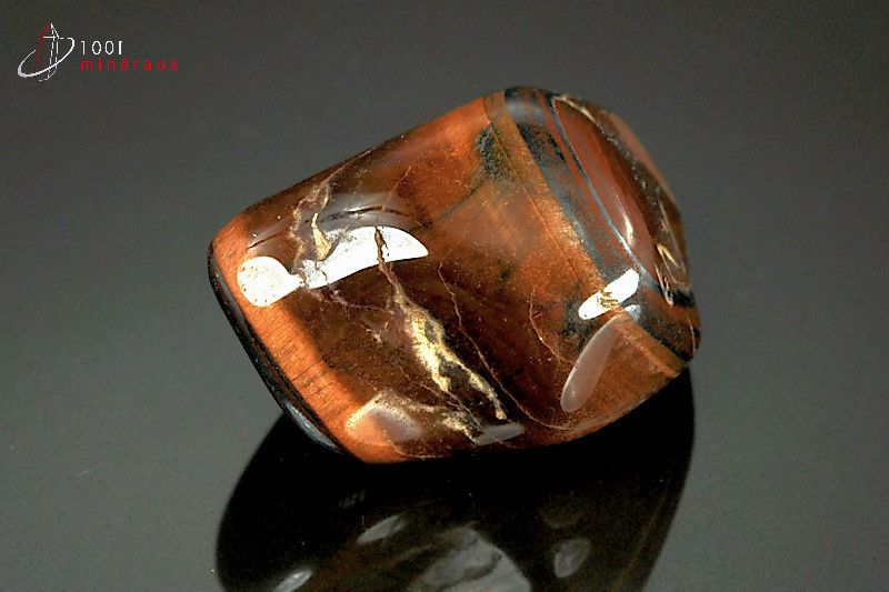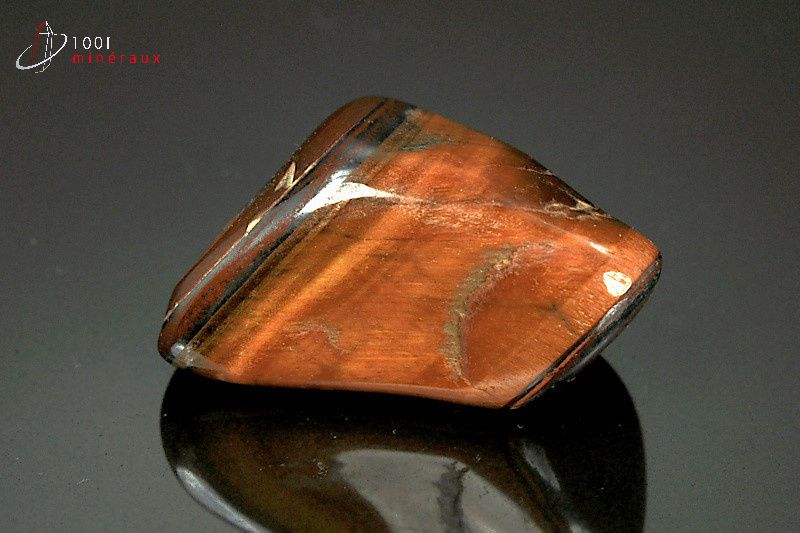 L' OEIL DE TAUREAU appartient au groupe des silicates. Il contient essentiellement du silicium et a la même formule chimique que le Quartz. C'est une variété de calcédoine. Il se présente sous forme massive microcristalline. C'est une pierre très dure. L'alternance de bandes provient de la combinaison avec un autre minéral riche en fer, la Riebeckite. Il existe plusieurs sortes d' yeux : l' OEIL DE TIGRE, l' OEIL DE TAUREAU (le plus souvent Oeil de Tigre chauffé), l' OEIL DE CHAT, l' OEIL DE FAUCON, l' OEIL DE FER.