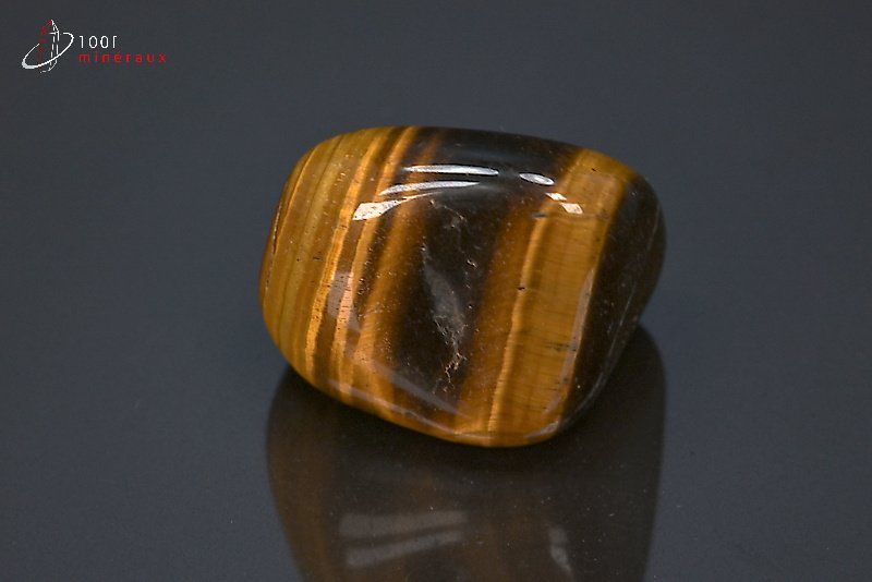 L' OEIL DE TIGRE appartient au groupe des silicates. Il contient essentiellement du silicium et a la même formule chimique que le Quartz. C'est une variété de calcédoine. Il se présente sous forme massive microcristalline. C'est une pierre très dure. L'alternance de bandes provient de la combinaison avec un autre minéral riche en fer, la Riebeckite. Il existe plusieurs sortes d'yeux : l' OEIL DE TIGRE, l' OEIL DE TAUREAU (le plus souvent Oeil de Tigre chauffé), l' OEIL DE CHAT, l' OEIL DE FAUCON, l' OEIL DE FER.