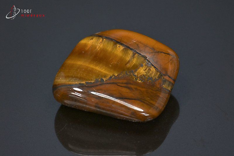 L' OEIL DE TIGRE appartient au groupe des silicates. Il contient essentiellement du silicium et a la même formule chimique que le Quartz. C'est une variété de calcédoine. Il se présente sous forme massive microcristalline. C'est une pierre très dure. L'alternance de bandes provient de la combinaison avec un autre minéral riche en fer, la Riebeckite. Il existe plusieurs sortes d'yeux : l' OEIL DE TIGRE, l' OEIL DE TAUREAU (le plus souvent Oeil de Tigre chauffé), l' OEIL DE CHAT, l' OEIL DE FAUCON, l' OEIL DE FER.
