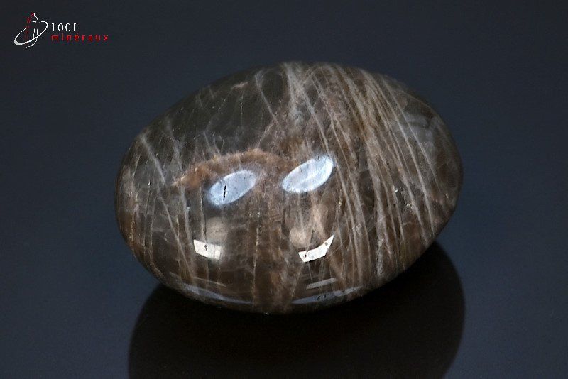 Spécimen d'un galet poli de Pierre de Lune noire.