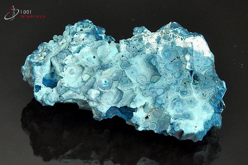 La PLANCHEITE se présente souvent sous forme d'agrégats fibreux et d'enduits. Lorsqu'elle cristallise, elle forme des cristaux aciculaires et/ou fibroradiés. Sa densitée est de 3.6 et sa duretée est notée 6/10 sur l'échelle de Mohs. Le trait sur la porcelaine est bleu clair.