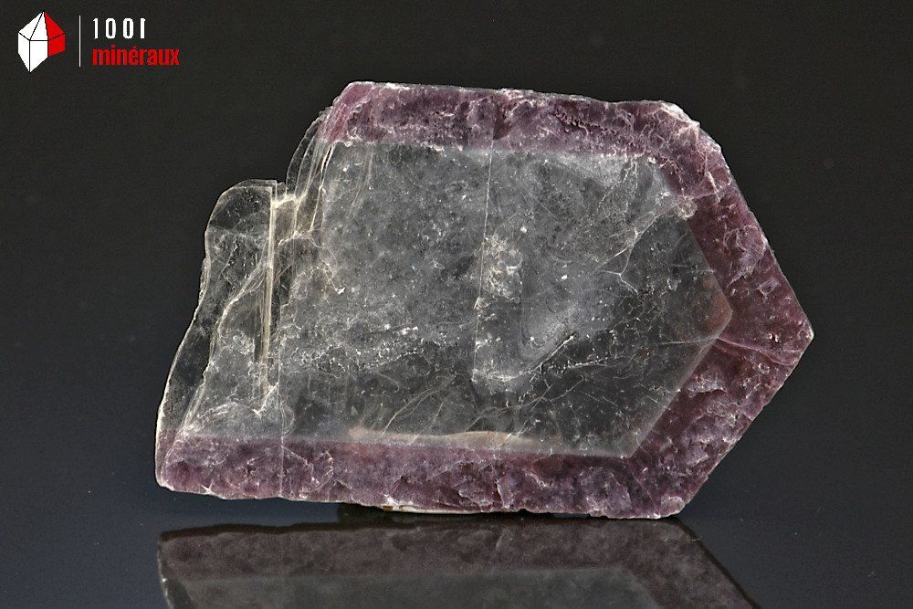 Spécimen d'une plaque de Mica blanc avec une bordure mauve de Lépidolite.