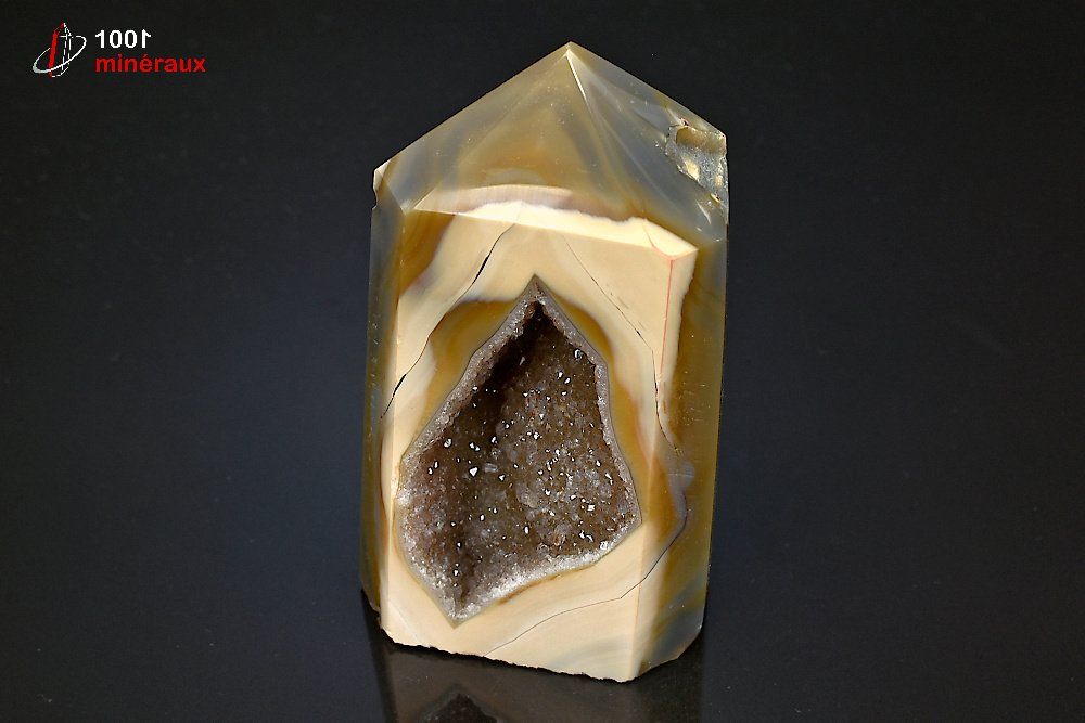 Magnifique spécimen d'une pointe polie d'Agate. avec une cristallastion secondaire de Quartz.