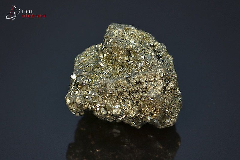 Spécimen d'une masse granuleuse et partiellement cristallisée de Pyrite brute.