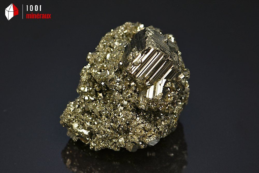La PYRITE a la même formule chimique que la Marcassite, mais celle-ci a une cristallisation rayonnante. De par son éclat métallique doré, la PYRITE a souvent été confondue avec l'or.