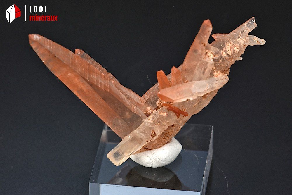 Le Quartz hématoïde contient du fer qui lui donne une belle couleur rouge orangé. Le Quartz rose doit sa couleur au Manganèse ou au Titane qui le compose, ou encore à des micro-inclusions de Dumortiérite.