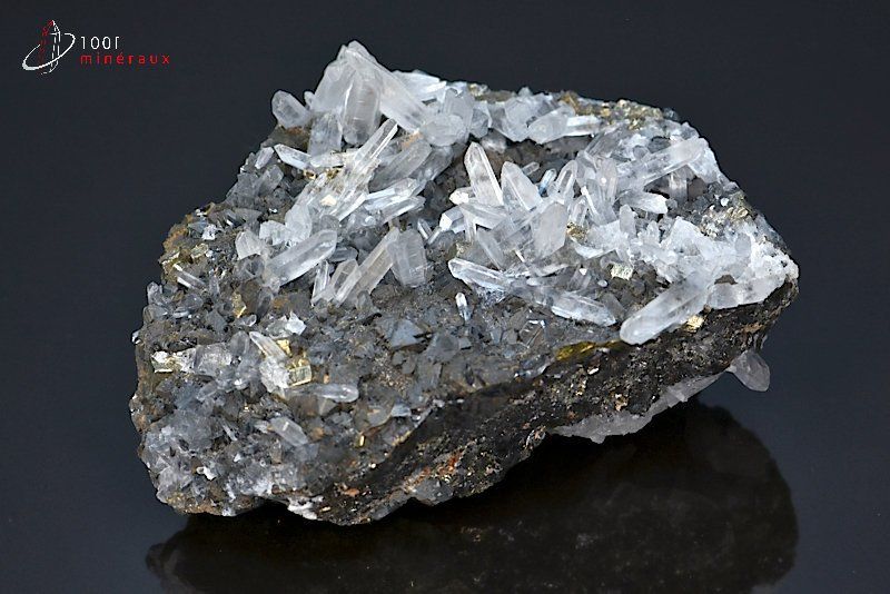 Très belle composition de cristaux de Quartz, de Pyrite sur une base de Marmatite gris-noir.