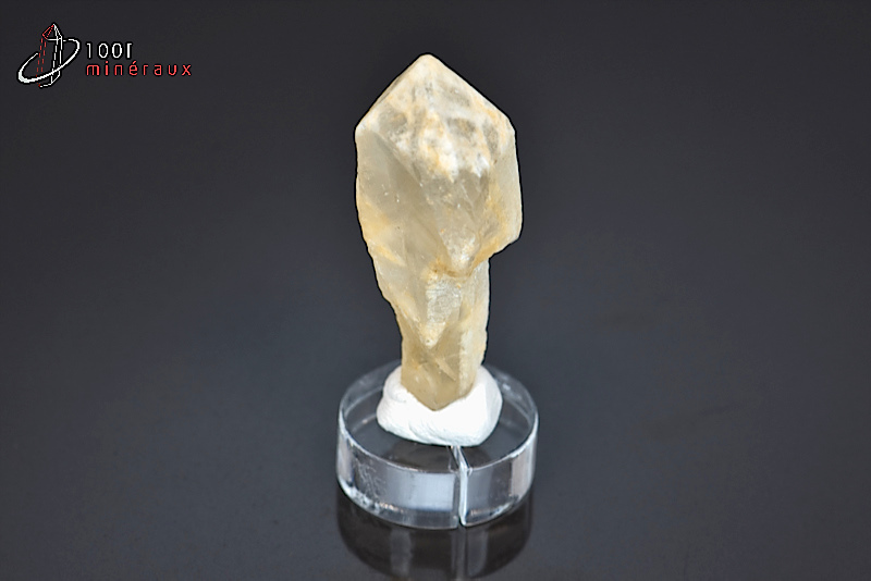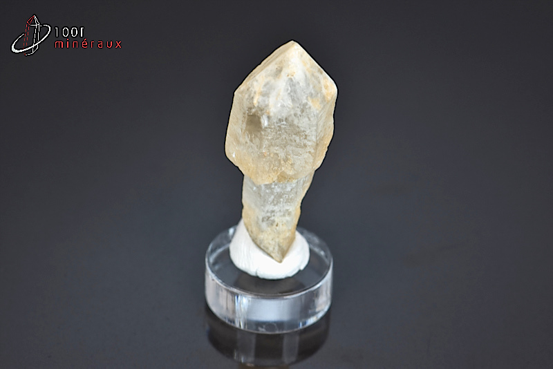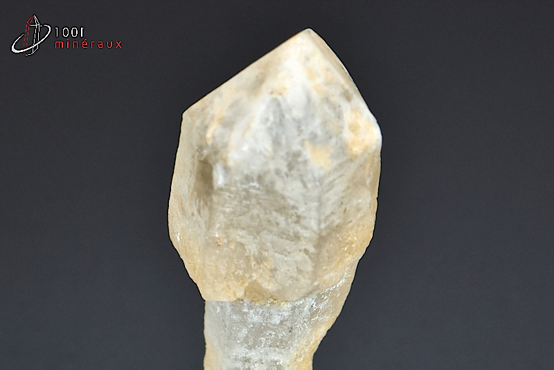 Spécimen d'un Quartz sceptre translucide présenté sur socle.