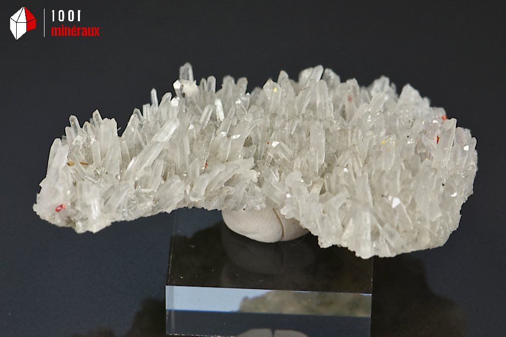 Le Quartz hématoïde contient du fer qui lui donne une belle couleur rouge orangé. Le Quartz rose doit sa couleur au Manganèse ou au Titane qui le compose, ou encore à des micro-inclusions de Dumortiérite.